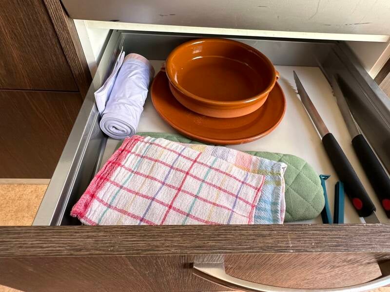 Die offene Küche ist wie Zuhause voll ausgestattet mit Kaffeemaschine (Nespresso Kapsel-Maschine), Wasserkocher, Toaster, Mikrowelle, Herd, Backofen, Heißluft-Friteuse, Küchenmaschine mit verschiedenen Aufsätzen usw.